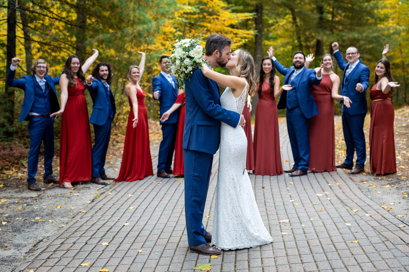 When things got weird last year, Crystal Lake got creative. Indoor weddings became really tricky, so they made great use of their outdoor space. Golf courses and clubs have a few things going for them when it comes to wedding photography. They have big, open green spaces. They have gardens with flowers and water features. They have golf carts that can transport you any where on the property. Crystal Lake has a great ballroom, but they built an outdoor pavilion. This meant that everyone could get together and dance with a lot of open air and natural light. We got beautiful pictures on the lake, on the golf course, during dancing, and under the lights. It doesn't hurt that the bride's wedding dress was stunning!